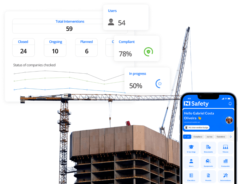 From large-scale infrastructure developments to multi-contractor building sites, IZI Safety helps construction leaders control workforce compliance, align permits with qualifications, and keep projects moving – safely and efficiently